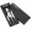 This Furi Pro wooden 3 piece knife block set includes a 9cm paring knife, a 15cm utility knife, a 17cm east/west santoku knife and a 20cm bread knife.