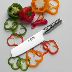 Global GSF-15 Peeling Knife: 8cm blade that is perfect for peeling, paring and chopping those smaller food items. Precisely solid forged balanced handle.