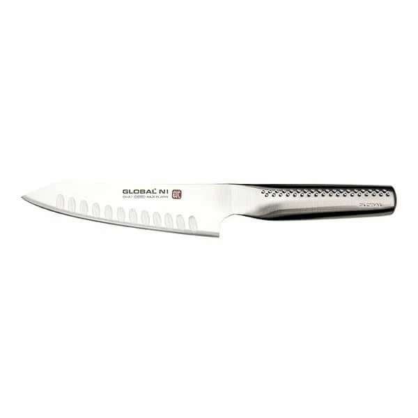 The Global Ni Fluted 20cm oriental cooks knife is suitable for lots of little kitchen tasks the fluted blade will help stop food sticking to the blades.