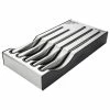 This Global G-79668B Takashi 8 Piece Knife Block Set includes 5 of Global’s popular knives – a G-2 20cm cook’s knife, a G-97 20cm bread knife, a GS-60 15cm utility knife, a GS-5 14cm vegetable chopper knife, a GSF-22 11cm utility knife, a GSF-15 8cm peeling knife, GKS-210 kitchen shears and a beechwood knife block. Hikaeme means ‘discreet’ in Japanese as the knives are hidden in the drawer, allowing more room on the worktop.
