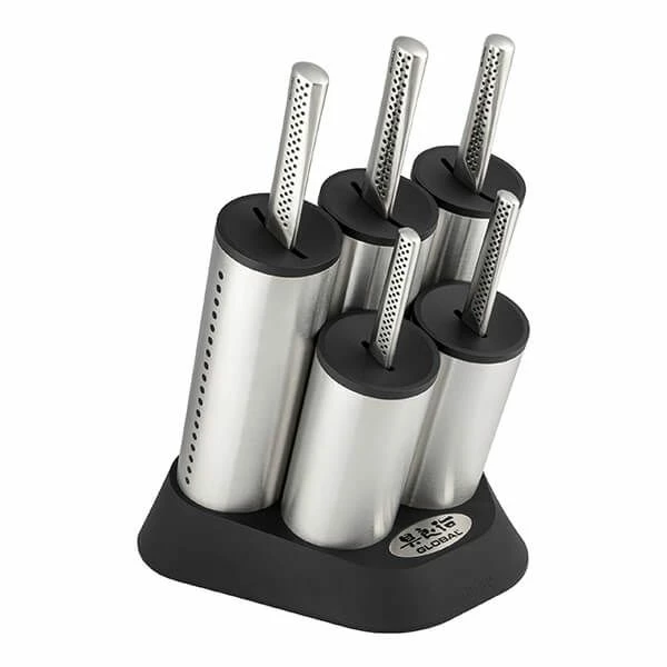 Part of Global’s Cylinder Engine Knife Blocks series, this knife block features 5 stainless steel cylinders made from the finest 18/10 material.