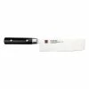 This Kasumi 21cm sashimi knife is made from 32 layer Damascus steel with a 59-60 Rockwell hardness.