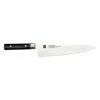 This Kasumi 27cm sashimi knife is made from 32 layer Damascus steel with a 59-60 Rockwell hardness.