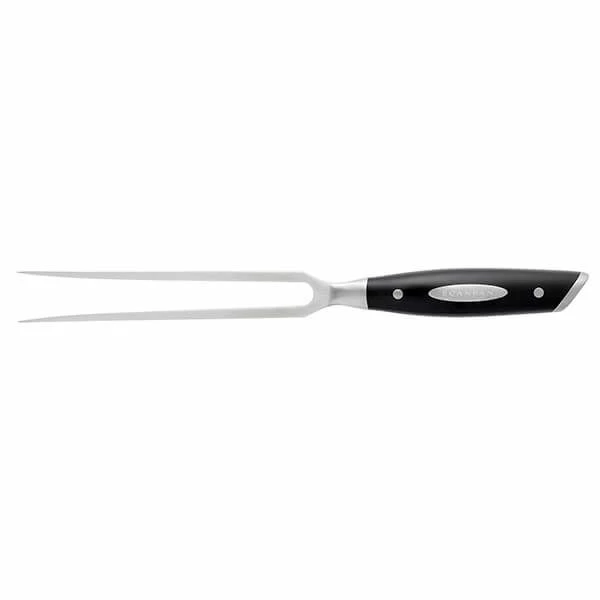 This Scanpan Classic 15cm Carving Fork firmly holds the roast in place while cutting, and helps to move the slices of meat during preparation.