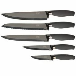 The Brooklyn Titanium 5 Piece Kitchen Knife Set from Taylor’s Eye Witness includes all the basic knives required in the kitchen. Finished in contemporary black with contrasting titanium effect bolster the set includes a 20cm cooks knife, 20cm carving knife, 20cm bread knife, 12cm all-purpose knife and a 10cm paring knife. Also included is a handy knife sharpener.