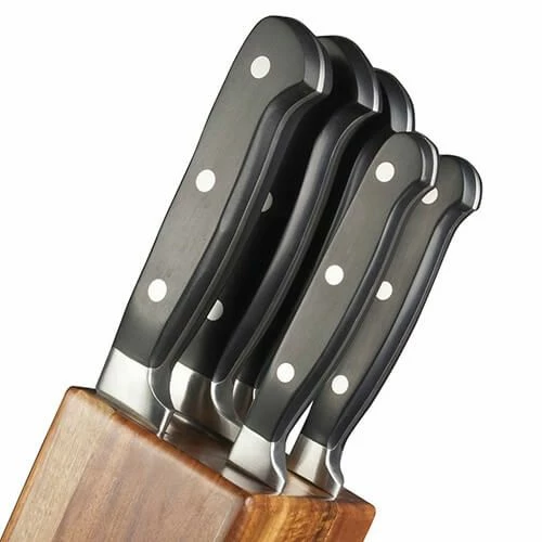 This Taylor’s Eye Witness Traditional 5 Piece Acacia Kitchen Knife Block Set features 5 essential kitchen knives and an Acacia Wood Knife Block.