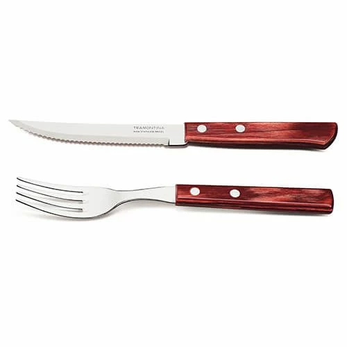 All the knives and forks feature red wooden handles which are riveted for extra strength.