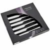 The serrated steak knife blade cuts through steak and other meats easily and are comfortable to use and are dishwasher safe for easy cleaning.