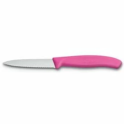 This pair of Victorinox Pink Paring Knives have stainless steel pointed tips with serrated blades which are suitable for all food preparation tasks.