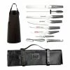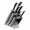 This 12pc Wusthof knife block set includes:an 8cm Paring Knife, 10cm Paring Knife, 14cm sausage knife, 17cm santoku knife, 20cm cook’s knife, 23cm carving knife, 23cm bread knife, 14cm boning knife, 16cm cleaver, 16cm meat fork, 23cm sharpening steel and a pair of kitchen shears.