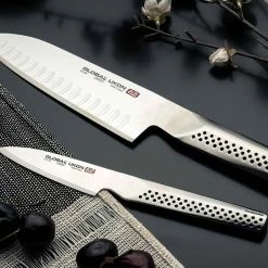 This 12pc Wusthof knife block set includes:an 8cm Paring Knife, 10cm Paring Knife, 14cm sausage knife, 17cm santoku knife, 20cm cook’s knife, 23cm carving knife, 23cm bread knife, 14cm boning knife, 16cm cleaver, 16cm meat fork, 23cm sharpening steel and a pair of kitchen shears.