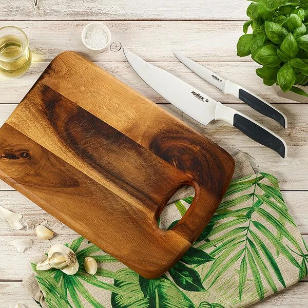 Made from high quality Japanese stainless steel. The chef’s knife includes a blade guard to protect the blades when in storage.